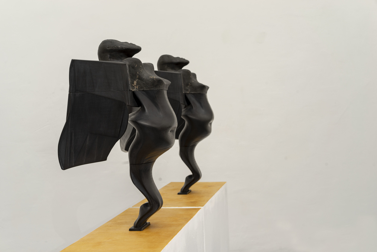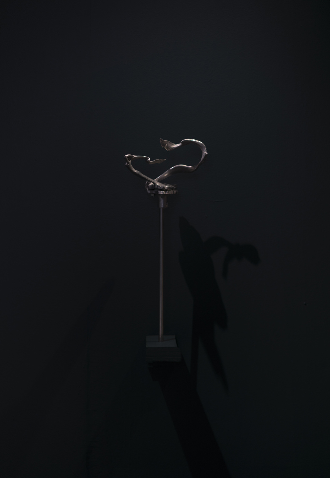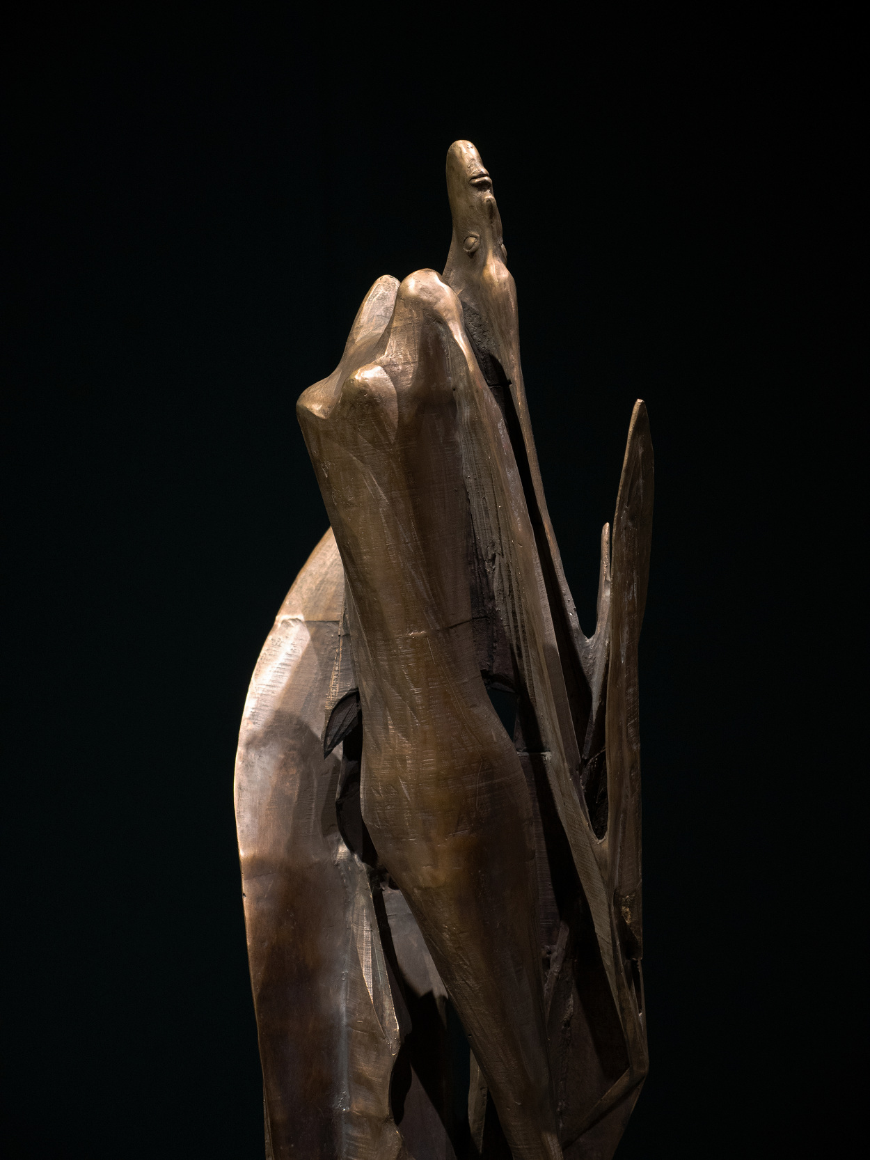 Lady-jet and Giacometti, 2018. bronze, plastic, 45” x 18” x 18”